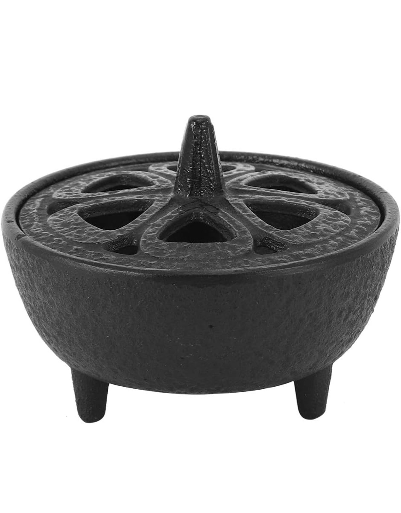 A solid and durable cast iron incense burner, ideal for burning resin, incense grains, or herbs with charcoal. Perfect for ritual use, cleansing, or home fragrance.