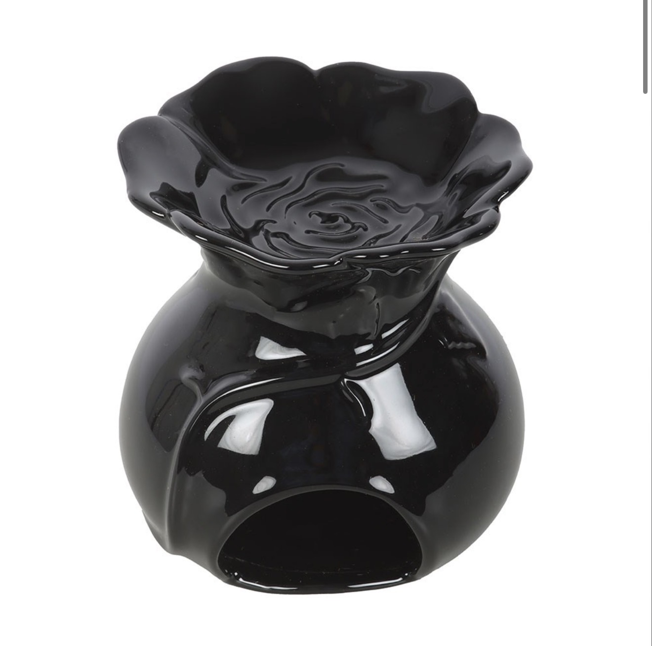 Exquisitely sculpted into the form of a dark rose in bloom, this ceramic oil burner is a captivating piece for scenting the home with your chosen fragrance oils.