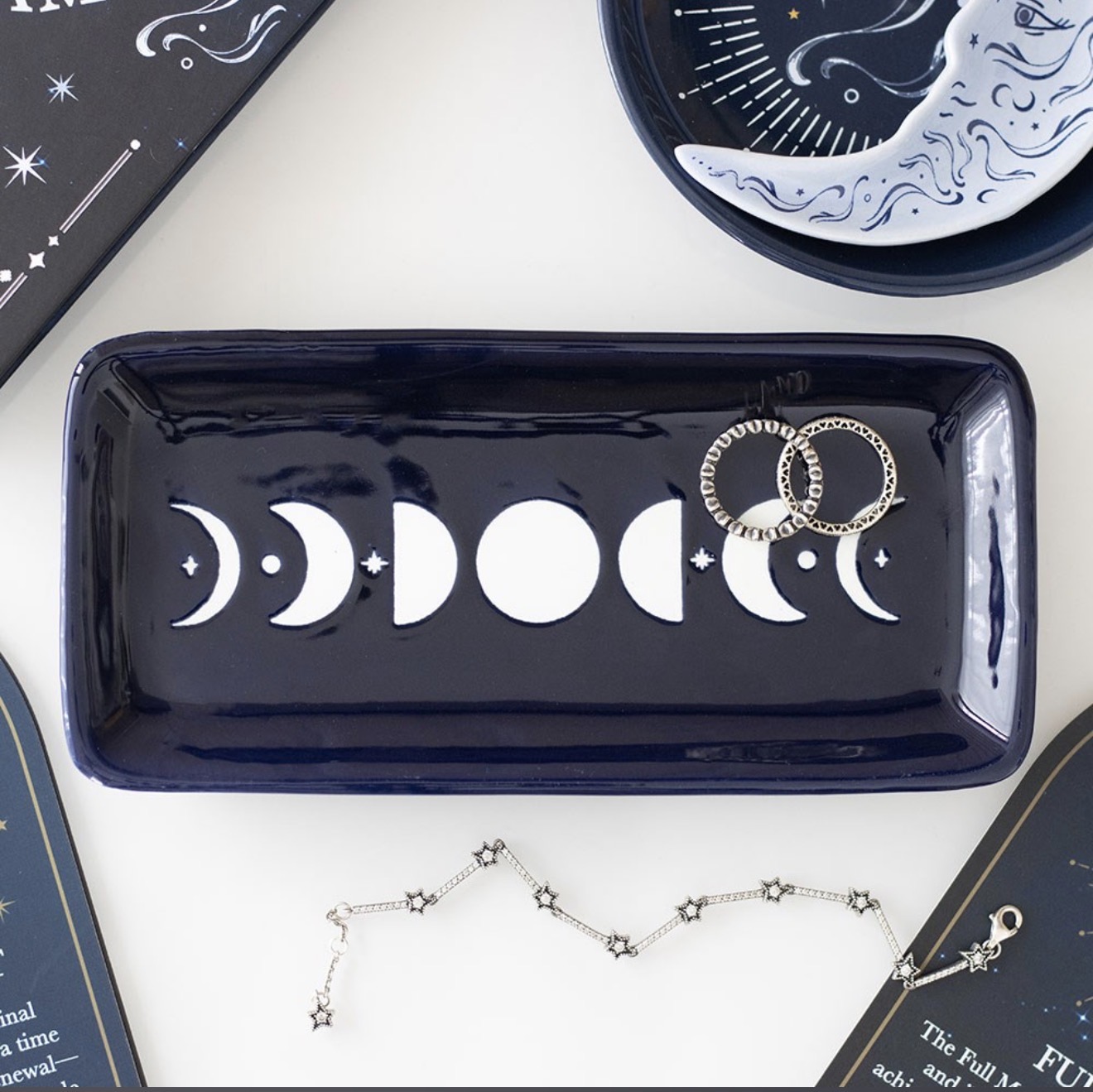 This trinket dish is finished with a moon phase design, making it ideal for holding rings, crystals or other tiny treasures.