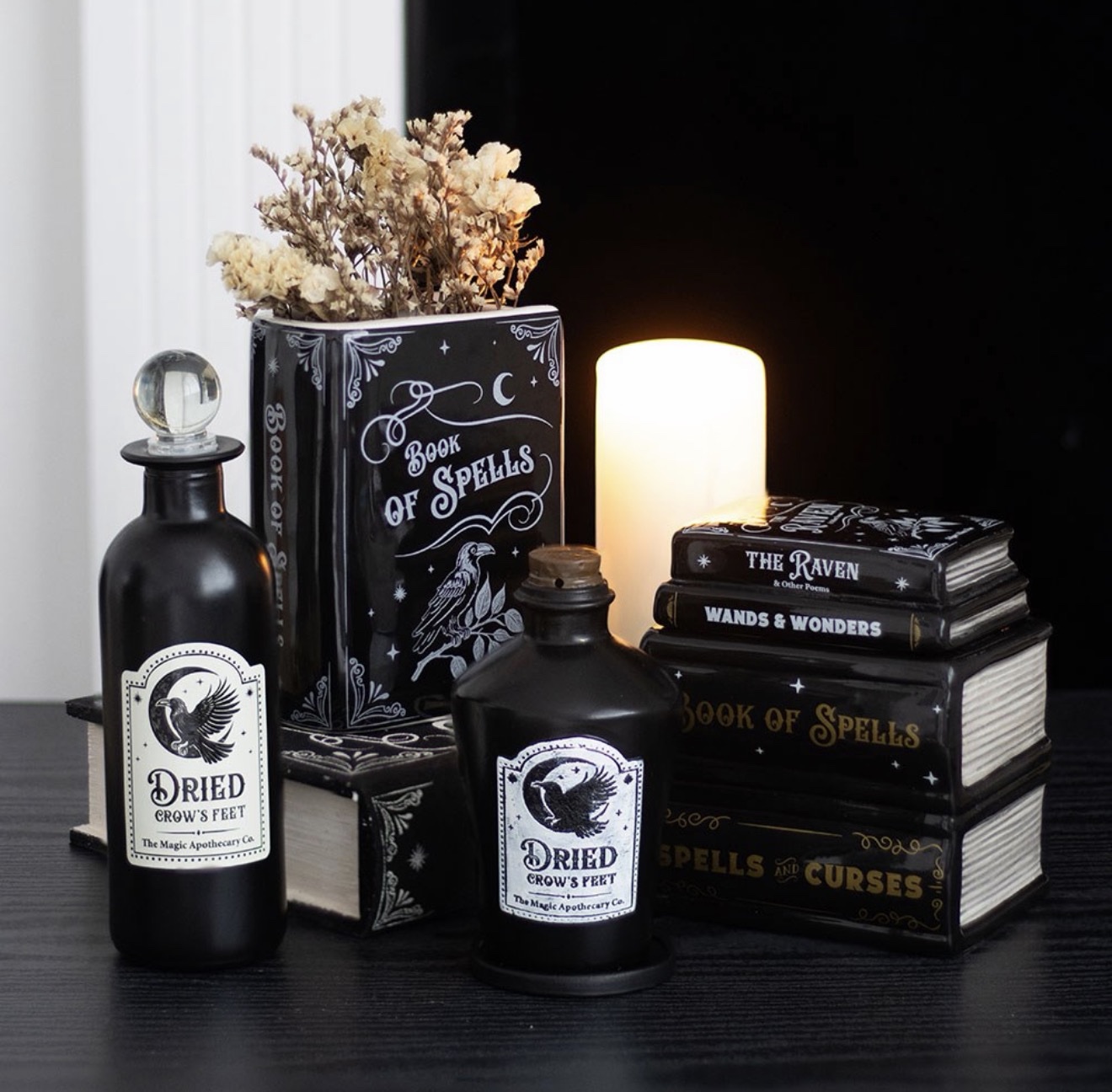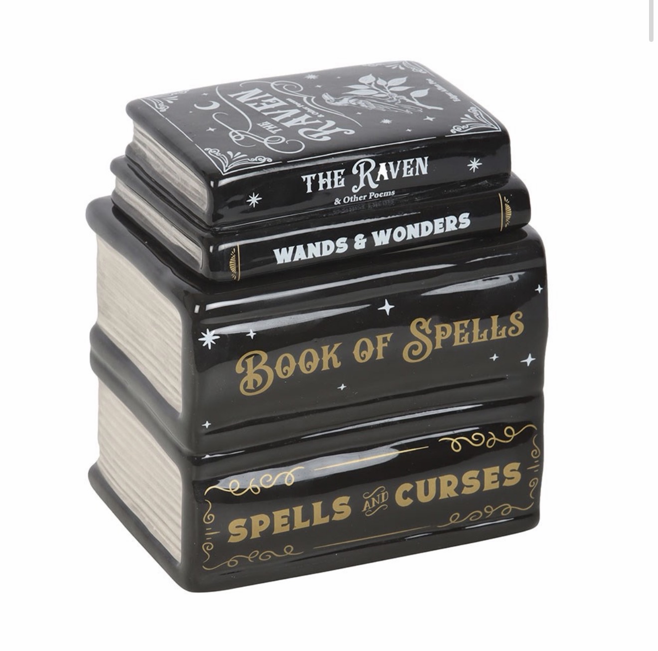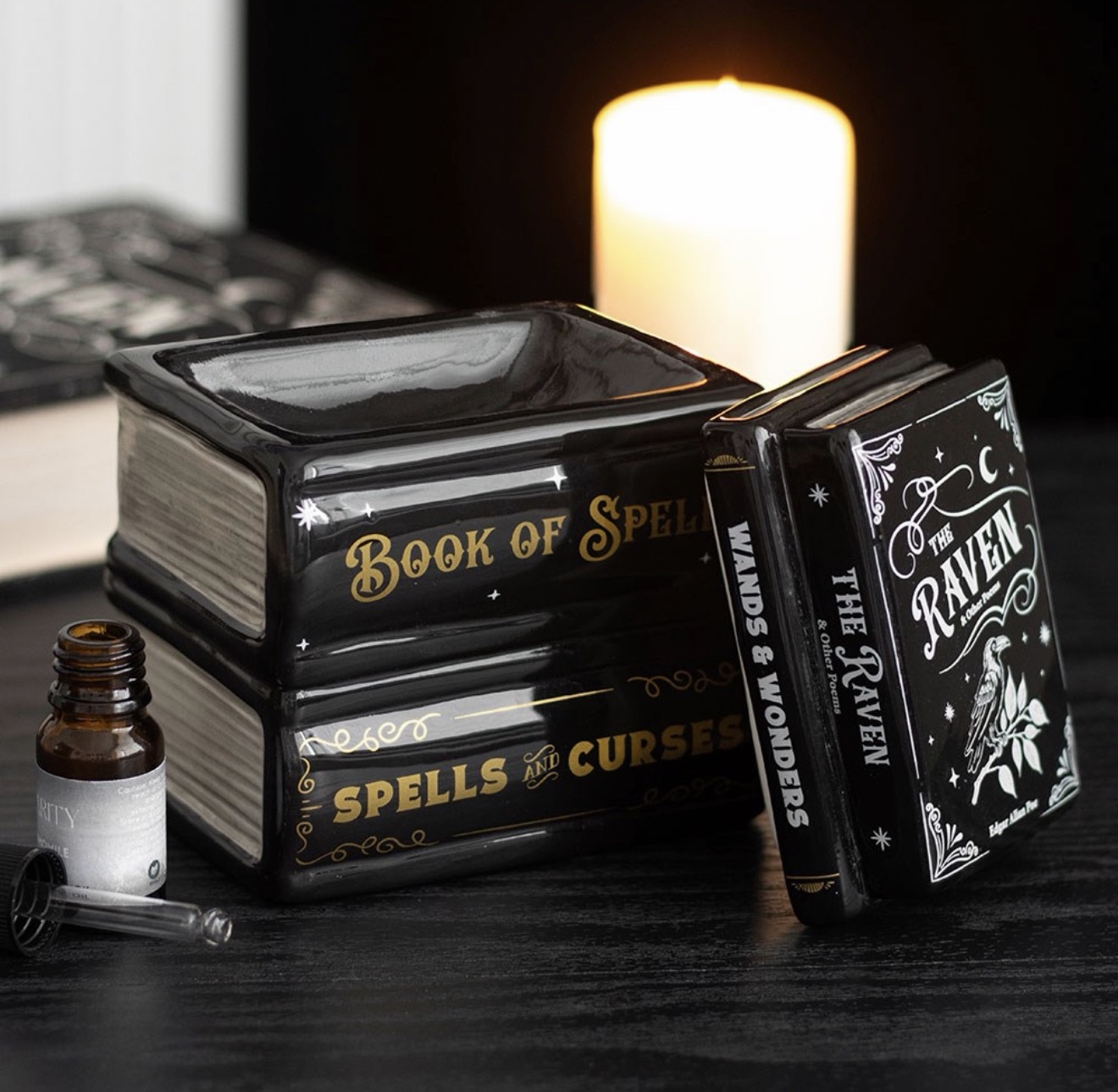 Infuse your space with magical fragrances using this oil burner designed to look like a stack of spell books. A perfect addition to gothic dรฉcor or as a thoughtful gift for fans of witchy aesthetics.