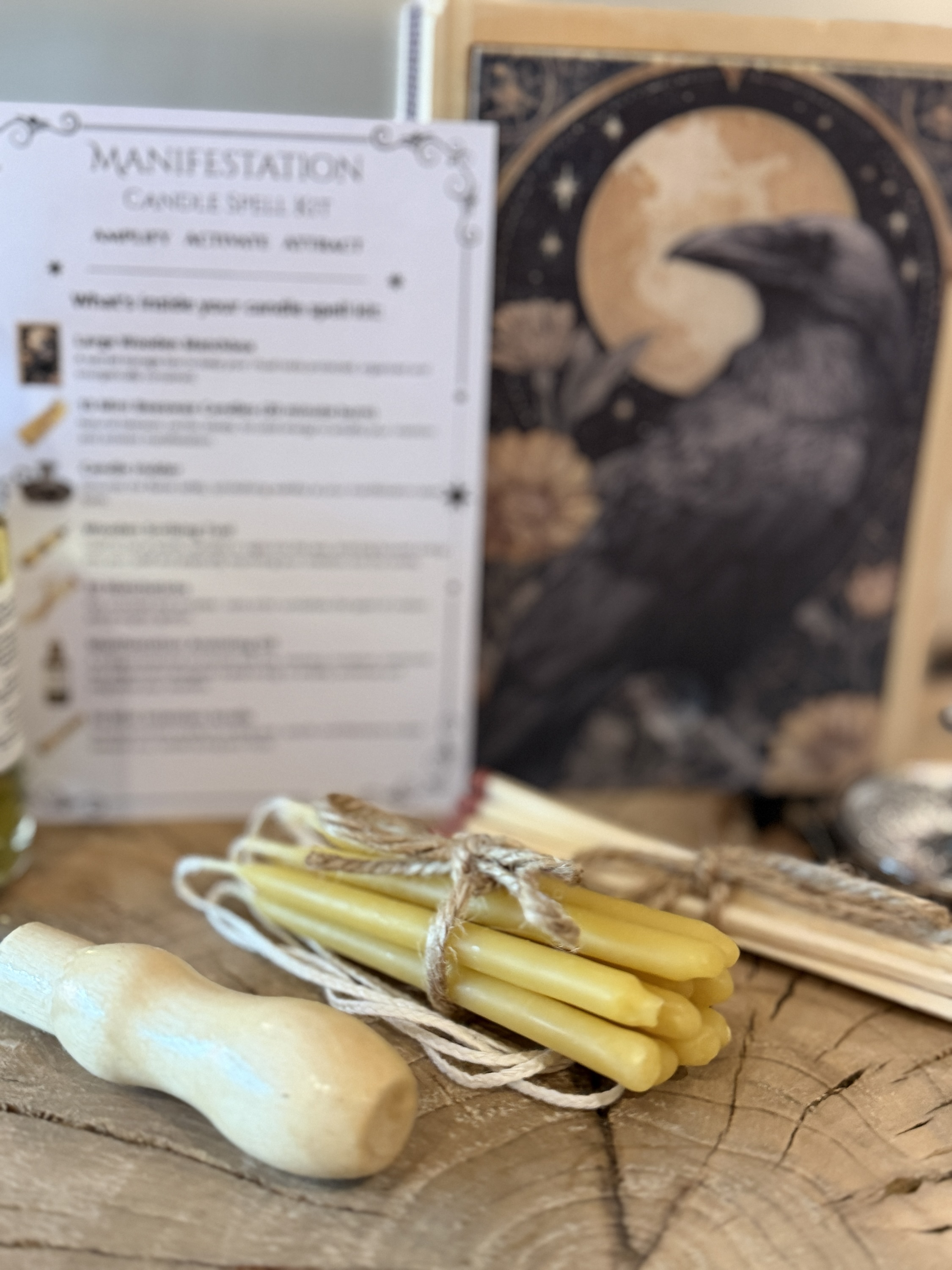 - A wooden scribing tool to carve your intentions into each candle