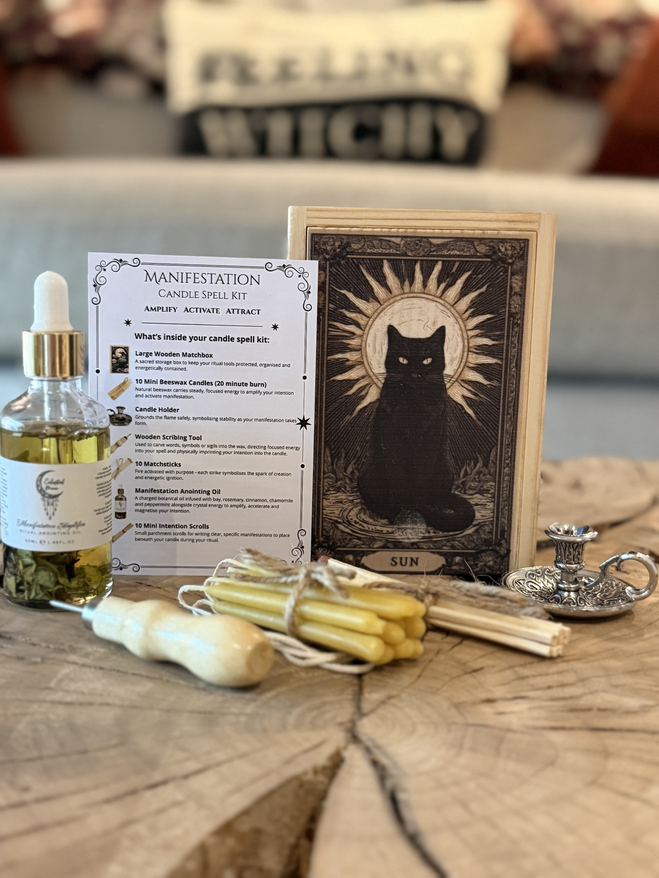 Using the included ritual guide, youโll be shown how to carve your intention, dress your candle and focus your energy as you light the flame.