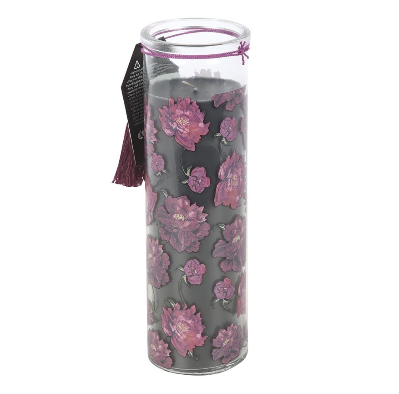 Approximately 55-hour burn time. Made from paraffin wax. Never leave a lit candle unattended.