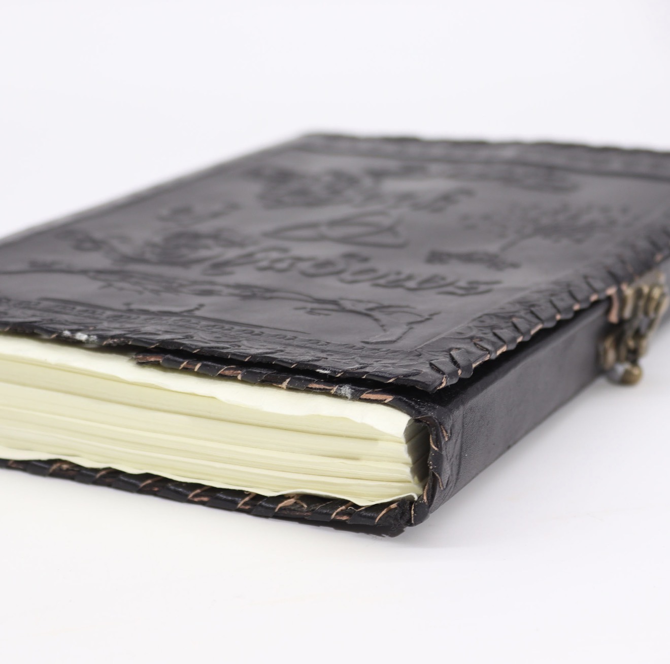 The embossed leather cover and rustic paper pages create a worn-in, enchanting piece to be passed down and enjoyed for generations.