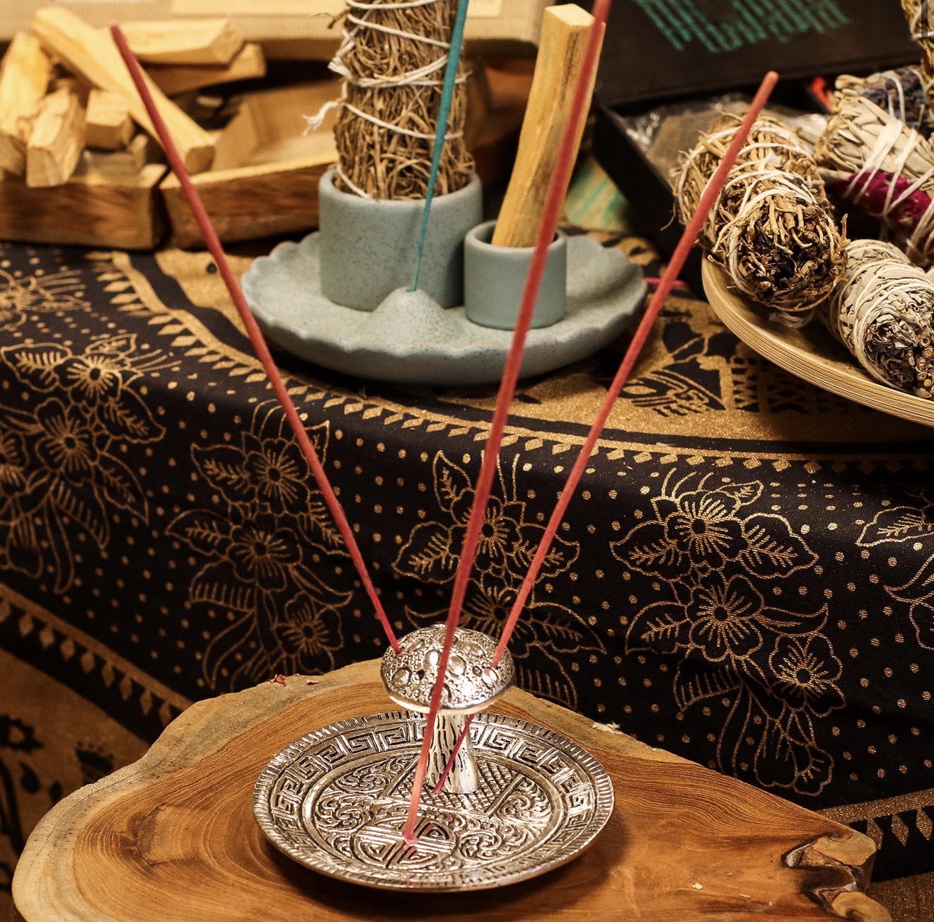 Each holder accommodates multiple incense sticks, allowing scents to mingle and fill the air with calm and balance. The metallic silver tone compliments both traditional and contemporary dรฉcor, catching the light and enhancing any spiritual or home setting.