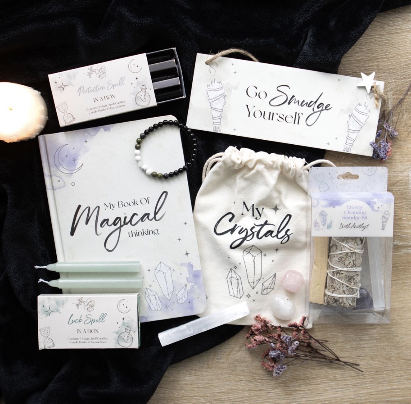 Features a mystical crystal and purple watercolour design on the cover that’s perfect for any modern witch.