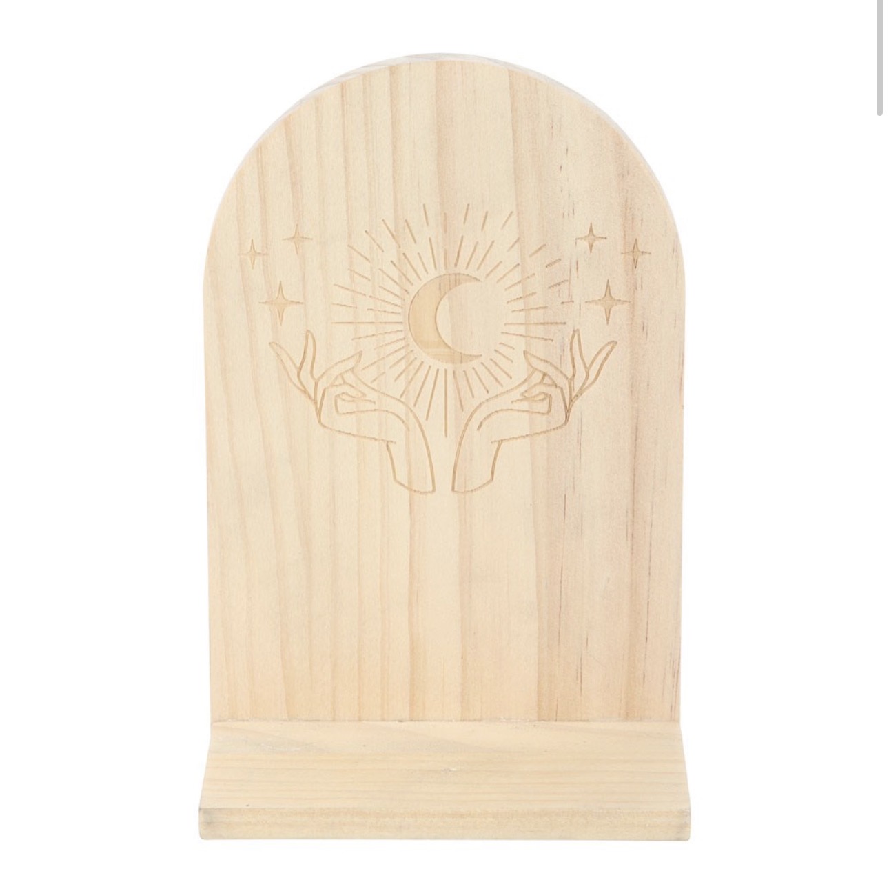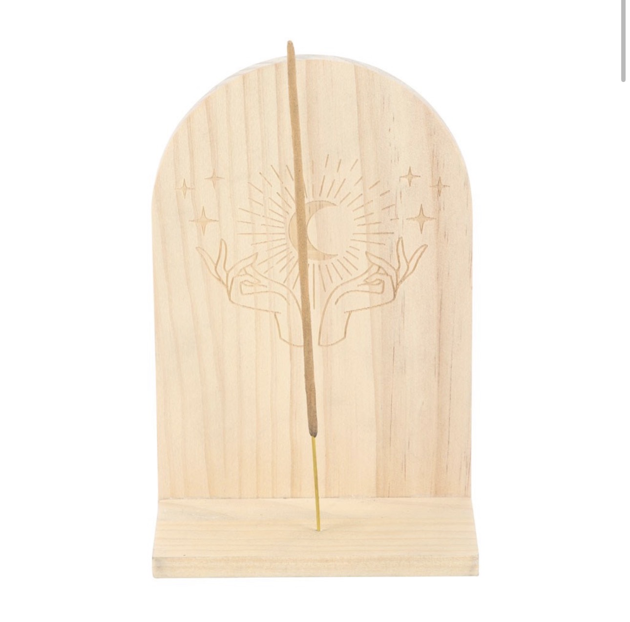Add a touch of mystical ambiance to the home with this wooden incense shelf featuring mystical hands, perfect for dispersing fragrance more freely.