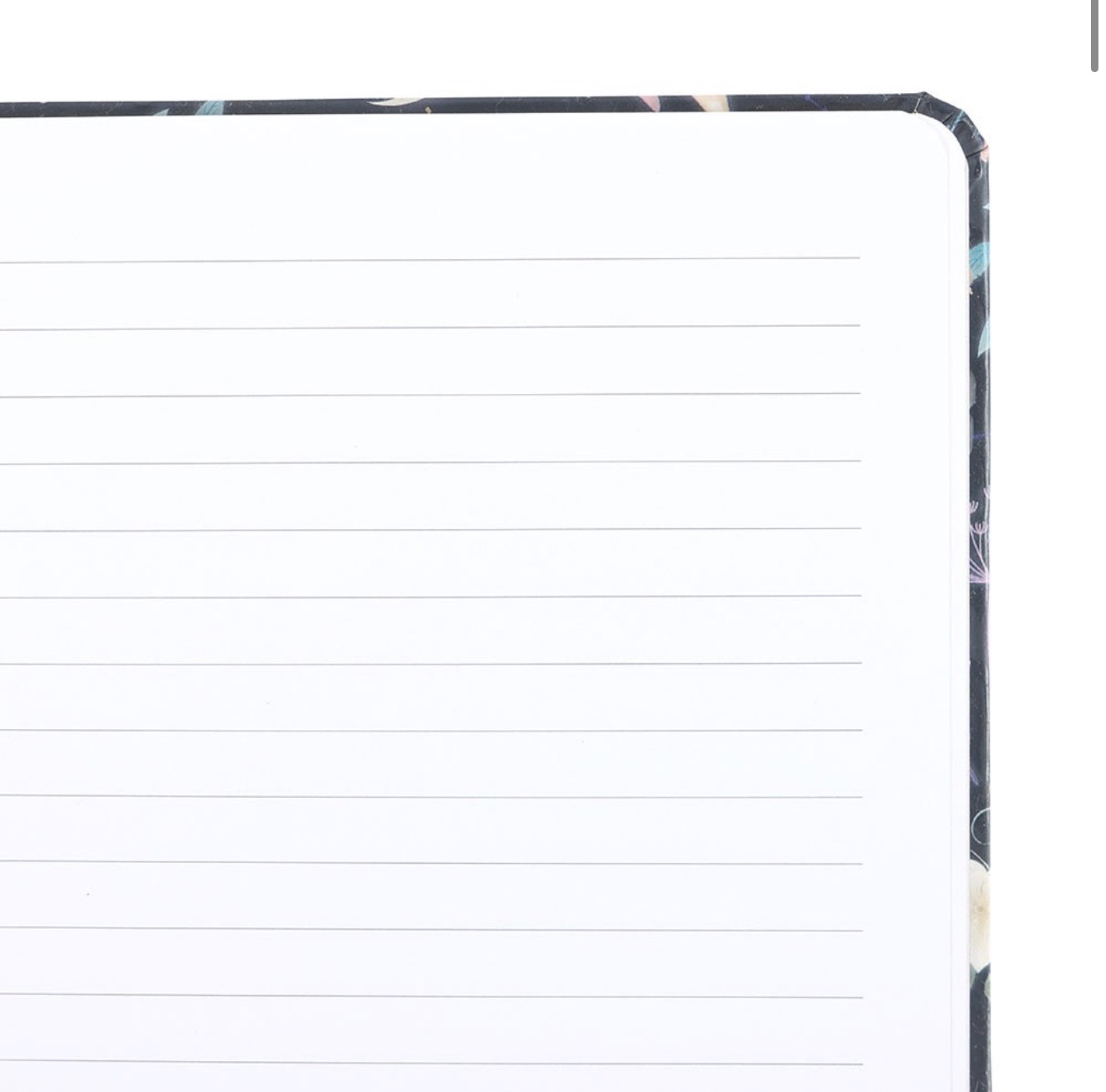 Whether used for notes, lists, or journaling, this beautiful A5 notebook will elevate your desktop with a mystical design of a flying night owl surrounded by midnight moths, crescent moons and forest plants.