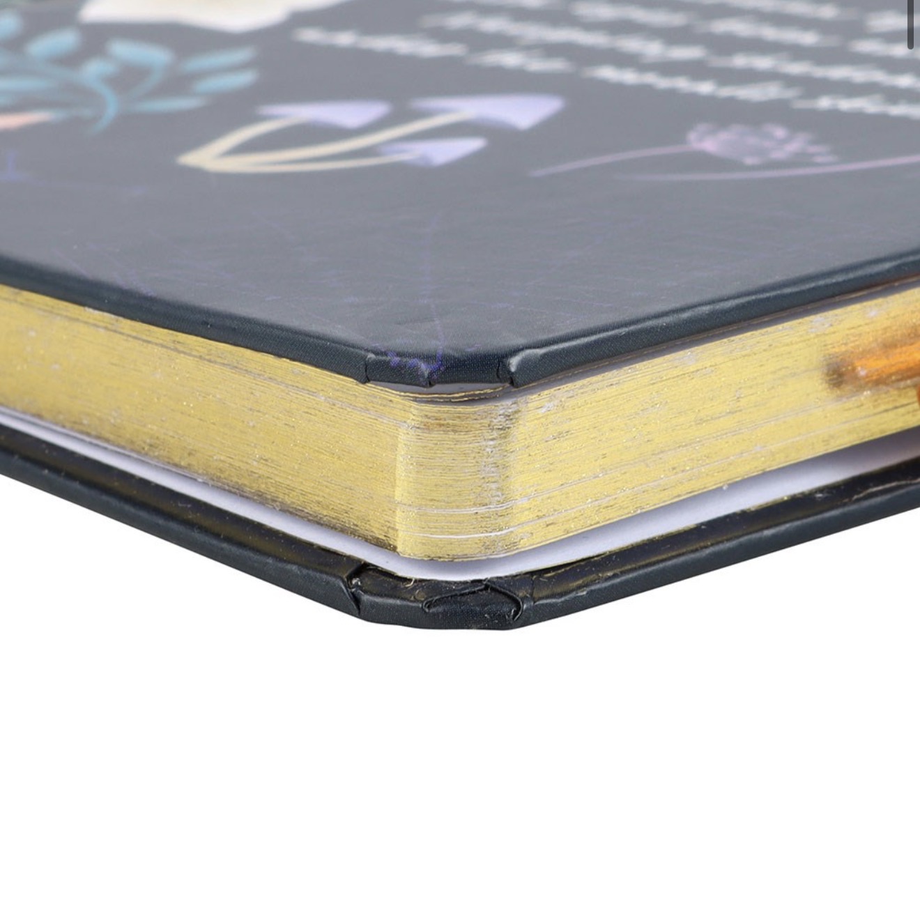 Featuring a flying night owl design surrounded by a beautiful night’s sky and forest plants, this journal comes with an elegant sodalite crystal chip ballpoint pen.
