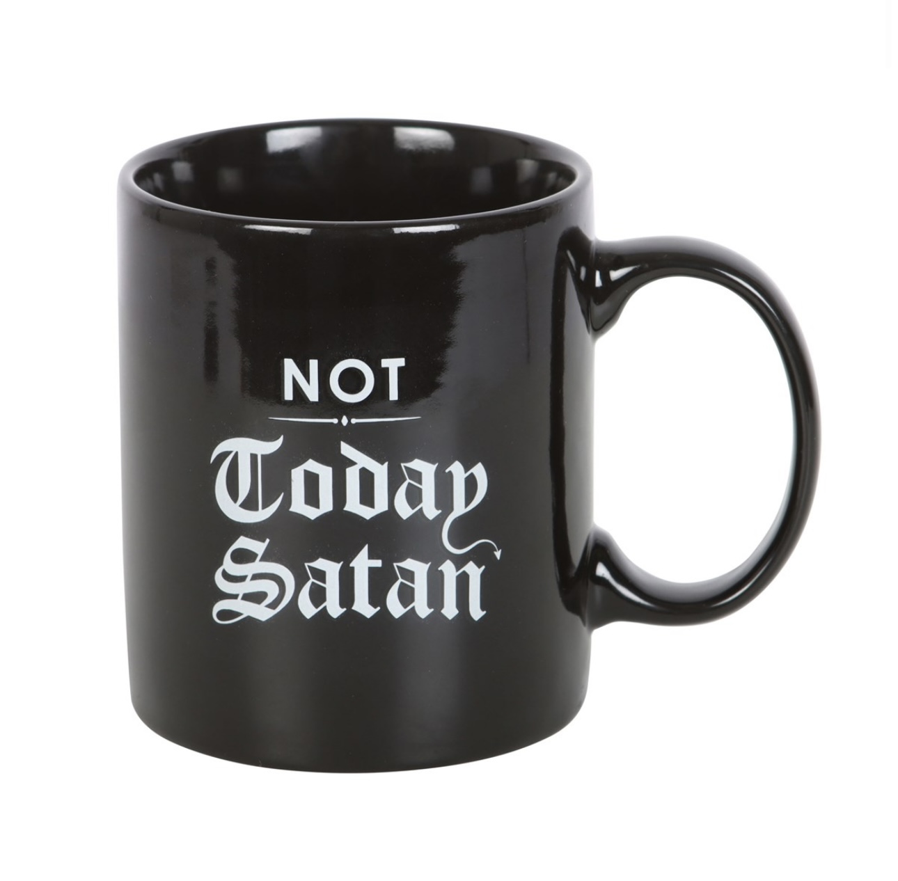 Keep your demons at bay with this funny ceramic mug. Features ‘Not Today Satan’ text written in gothic lettering for warding off unwanted guests.