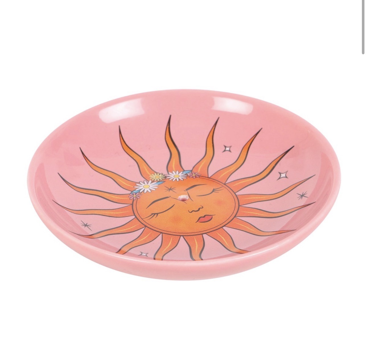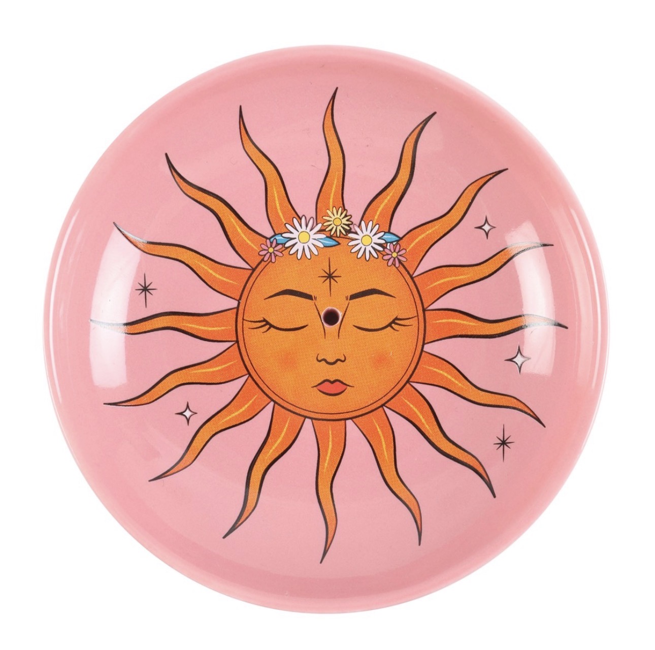 This modern incense stick holder features a colourful sun design inspired by ‘The Sun’ tarot card.