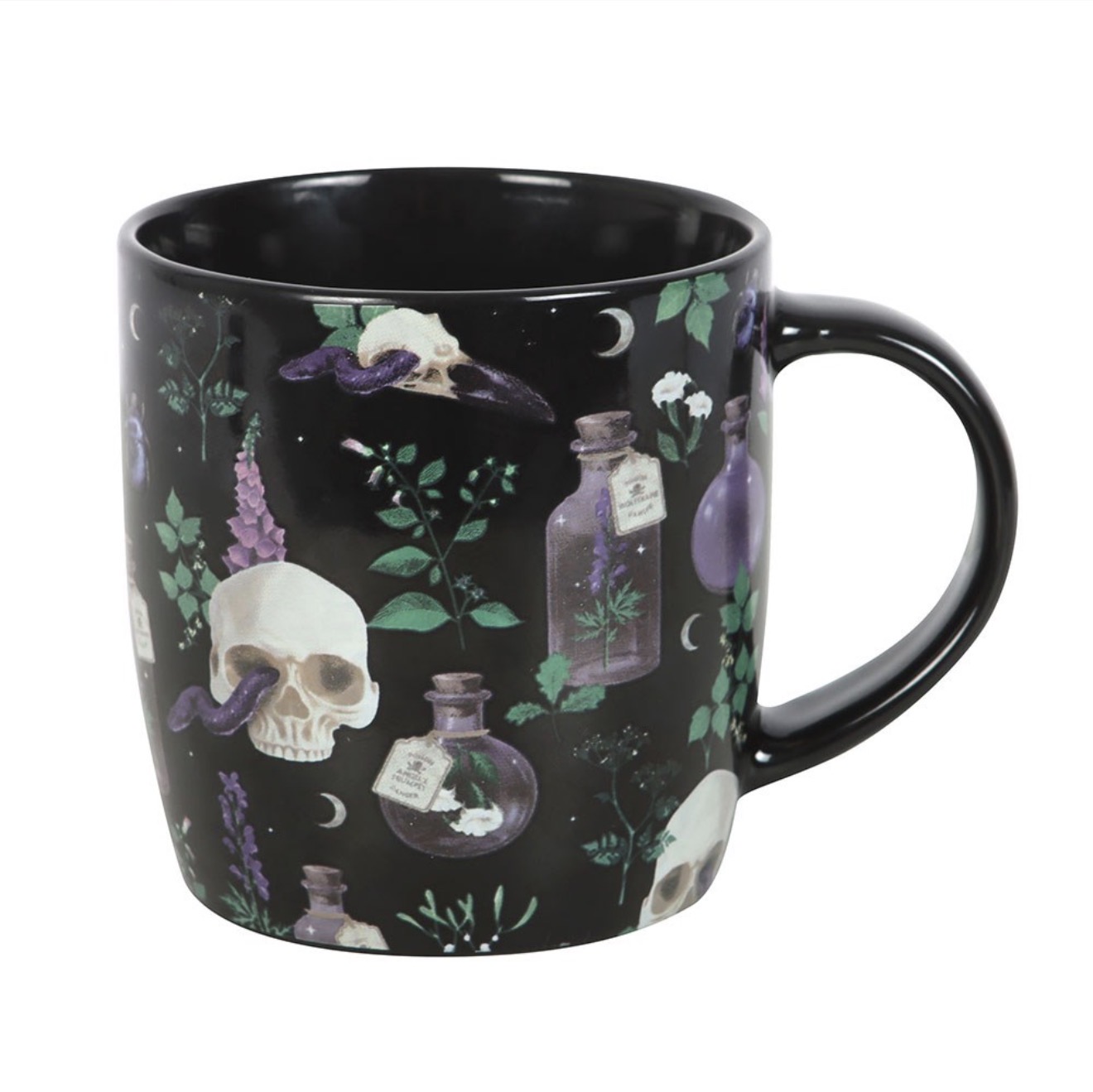 Start your day with a touch of gothic elegance. This ceramic mug features the enchanting Venom & Vines print, complete with skulls, florals and a hint of dark mystery.
