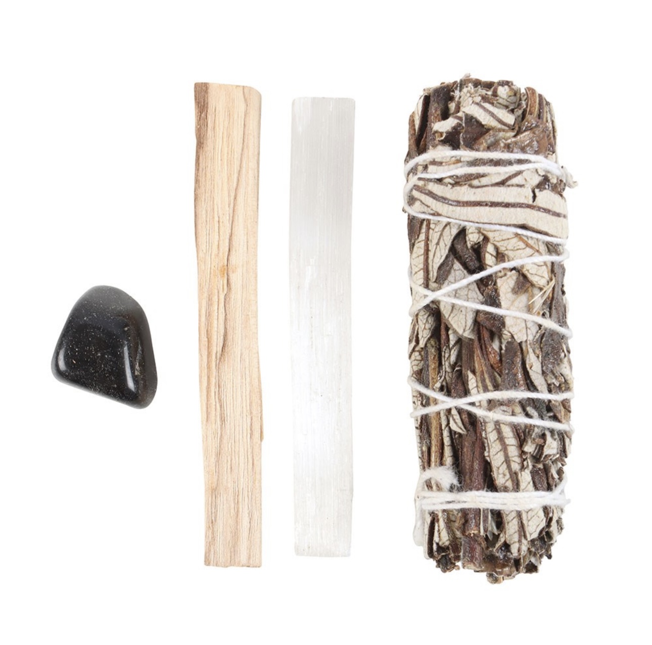 With a bundle of yerba santa sage for purification, palo santo for reducing stress, a selenite wand for removing energy blockages, and a tumbled black tourmaline crystal for balance, you will relax your mind, body and soul while feeling fresh and renewed.