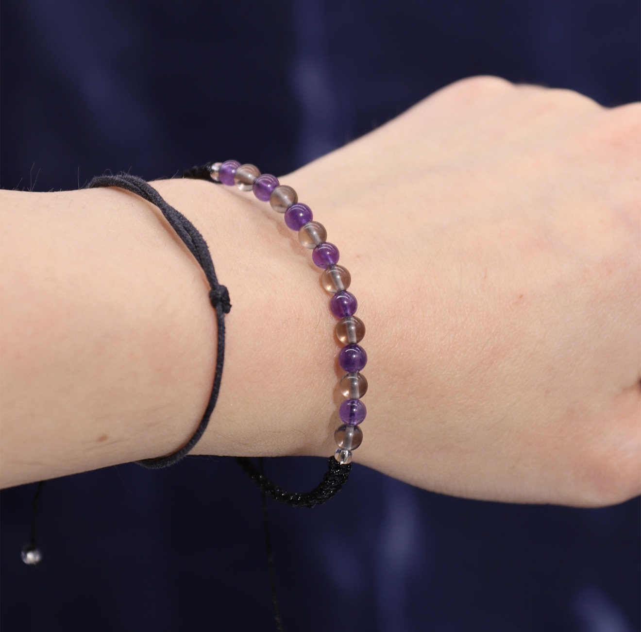 The set includes a gemstone bracelet made with amethyst and smoky quartz, chosen to support Capricornโs strength and focus:
