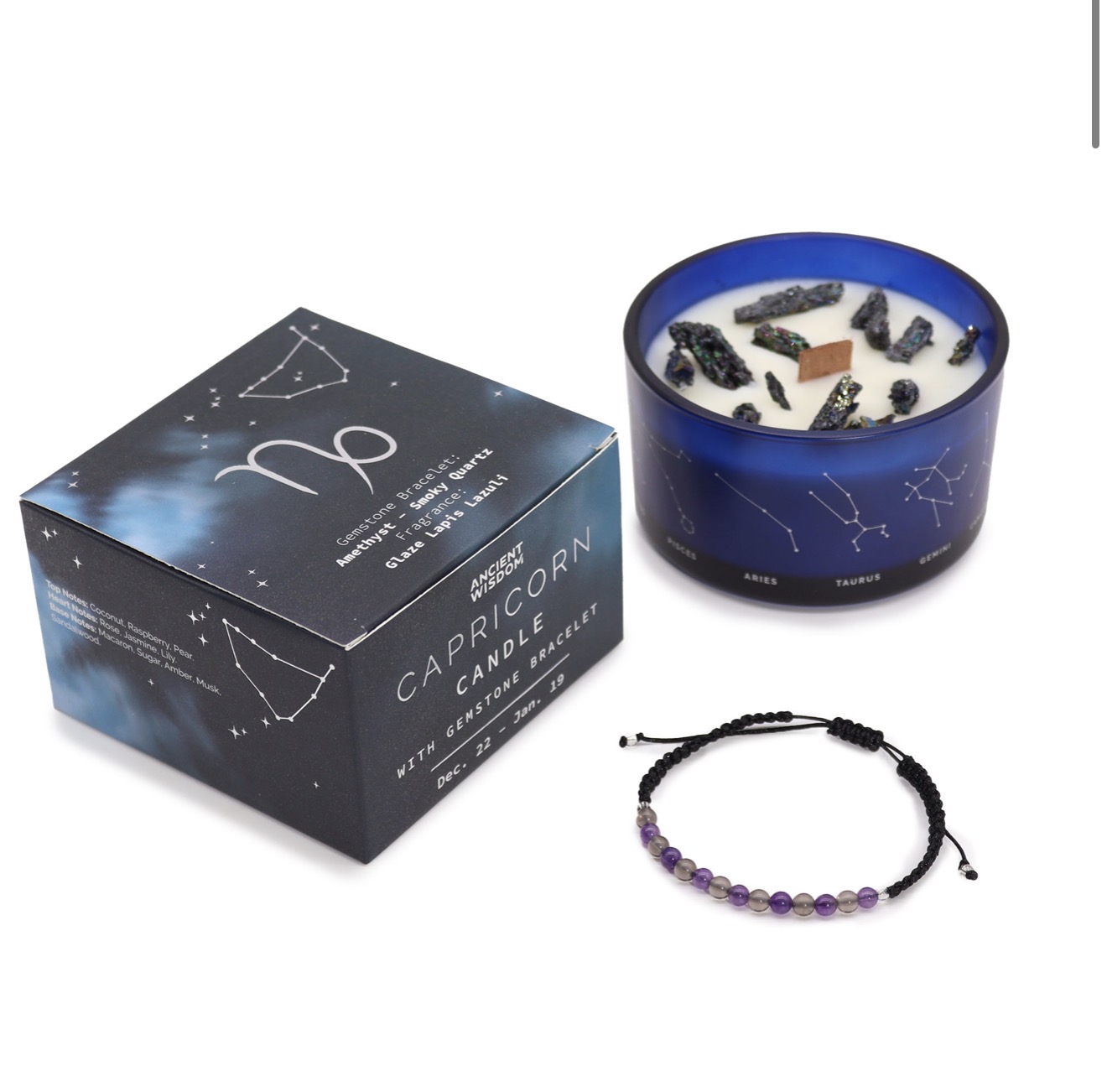 This elegant pairing of candle and bracelet is ideal for self-reflection, focus, or as a meaningful gift for a Capricorn.
